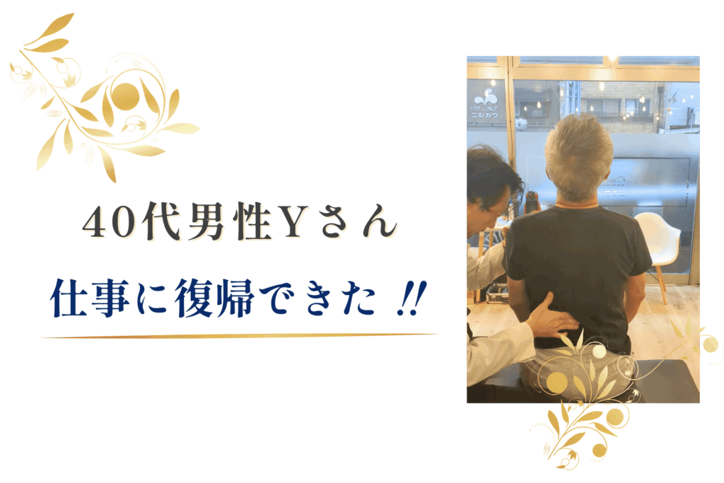 施術で痛みが引き、無事に仕事に復帰できました! 本当に助かりました。」